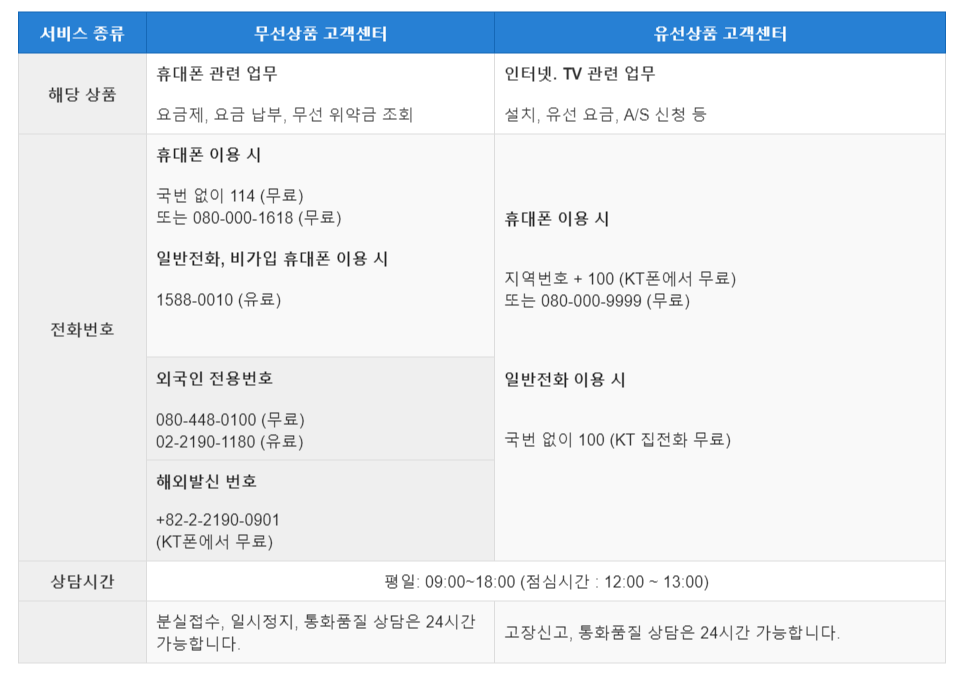 KT 고객센터 전화번호