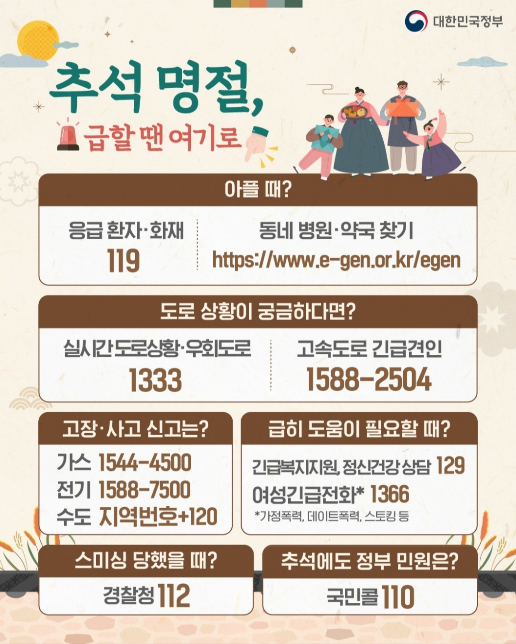 추석 명절 ,문 여는 약국, 명절 병원,가스 고장,명절 전기 고장,연휴 수도 고장, 명절 스미싱 신고, 명절 민원 신고, 추석 연휴