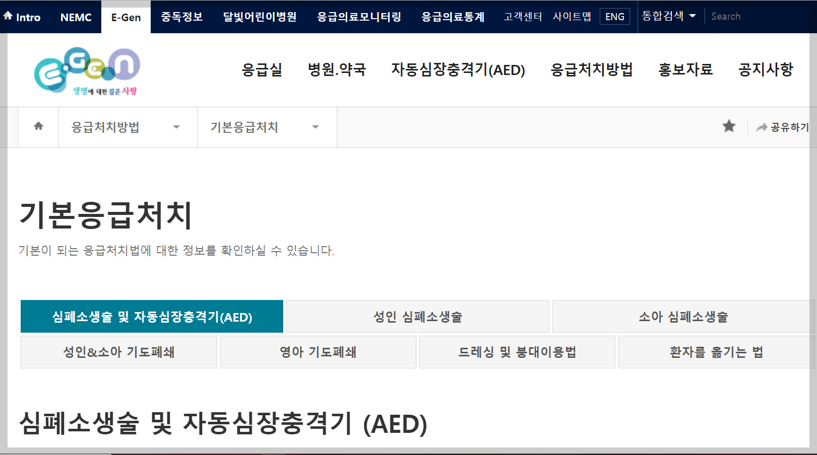 기본응급처치-심폐소생술 및 자동심장충격기(AED) | E-GEN통합홈페이지