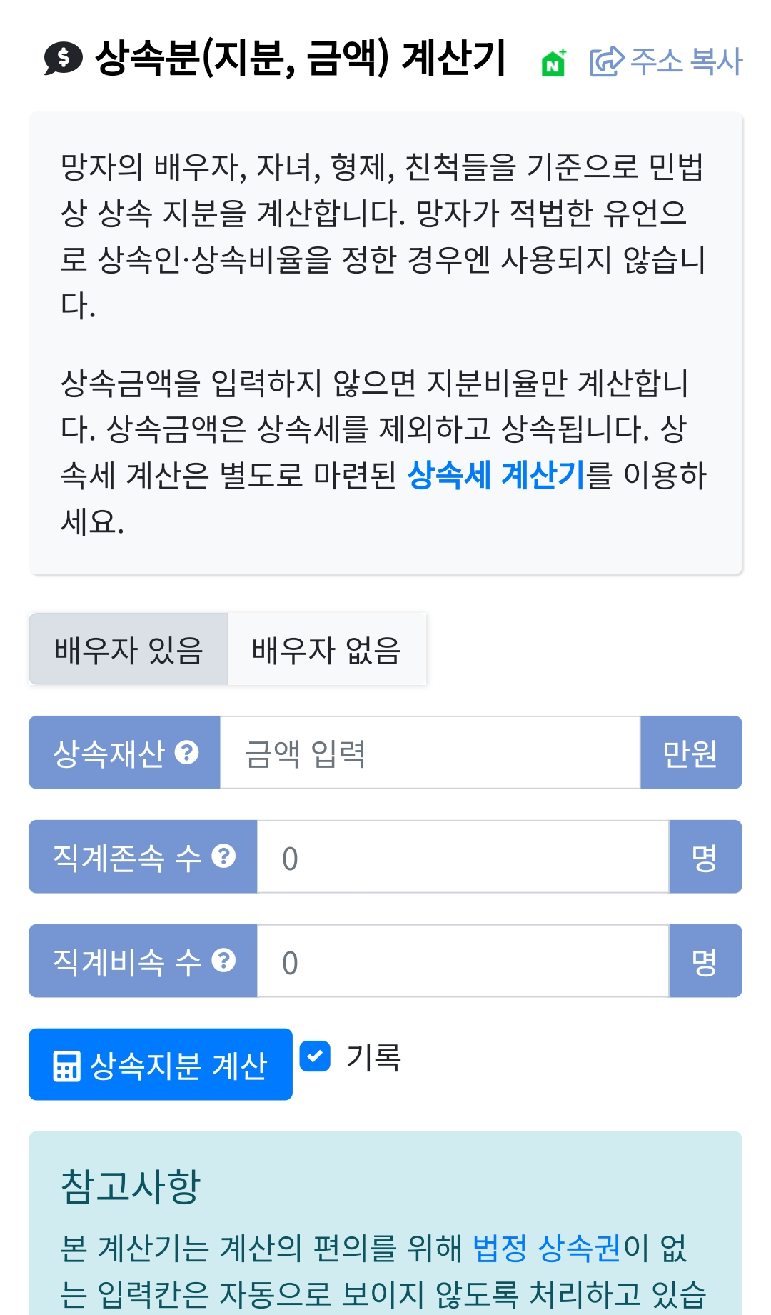 아래 상속세와 상속지분 계산기로 간단하게 계산해 보세요.