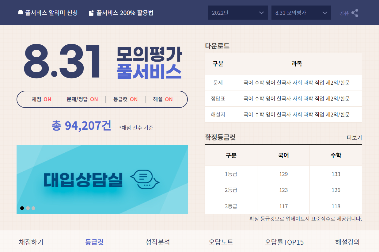 2022년 9월 모의고사 등급 컷 시험지 답지 학력평가 학평 수능날짜