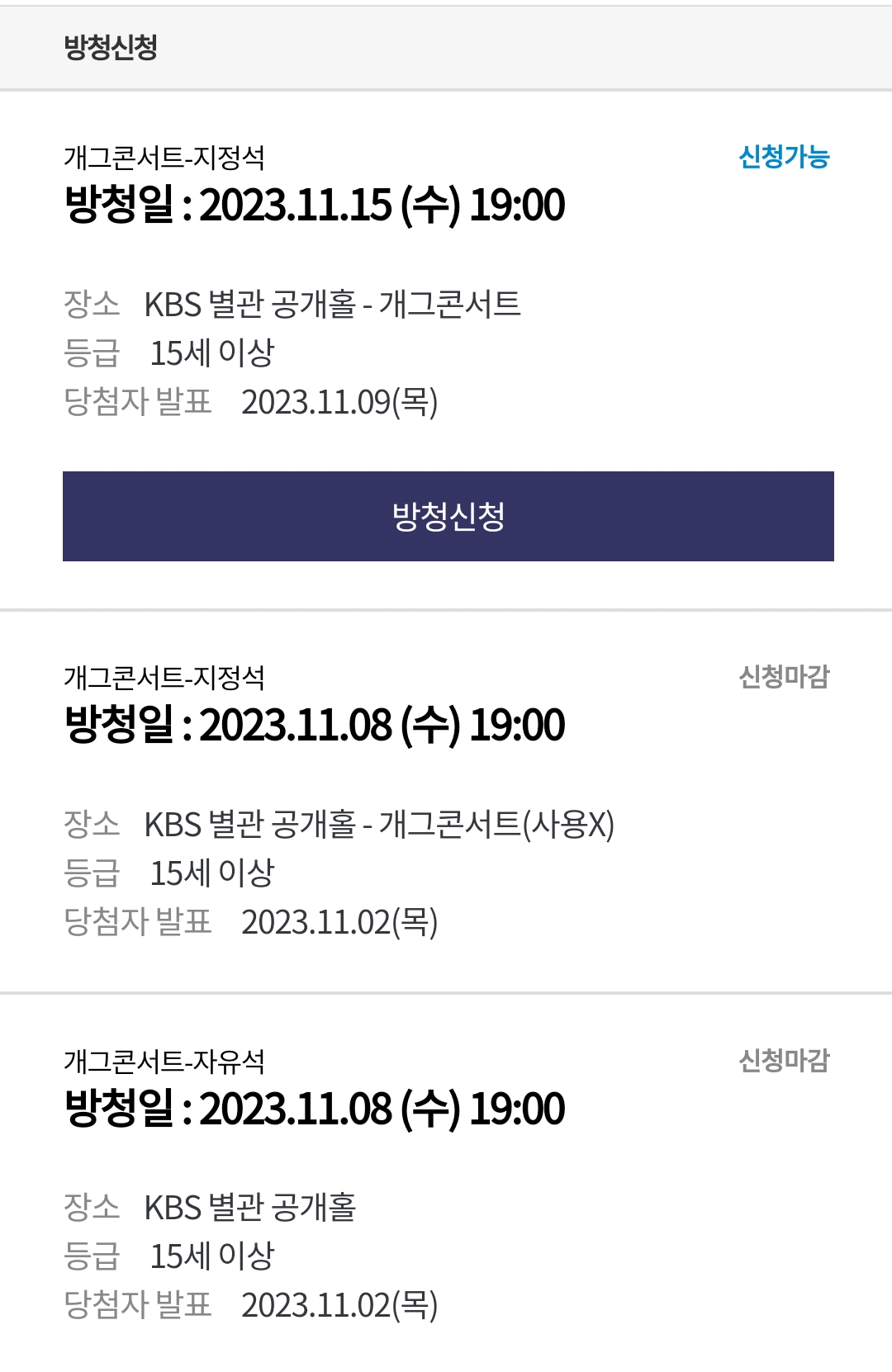 방청권 신청하실 분들은 아래 KBS 홈페이지방청 신청화면에서 로그인 후 신청하세요.(모바일로도 신청가능)