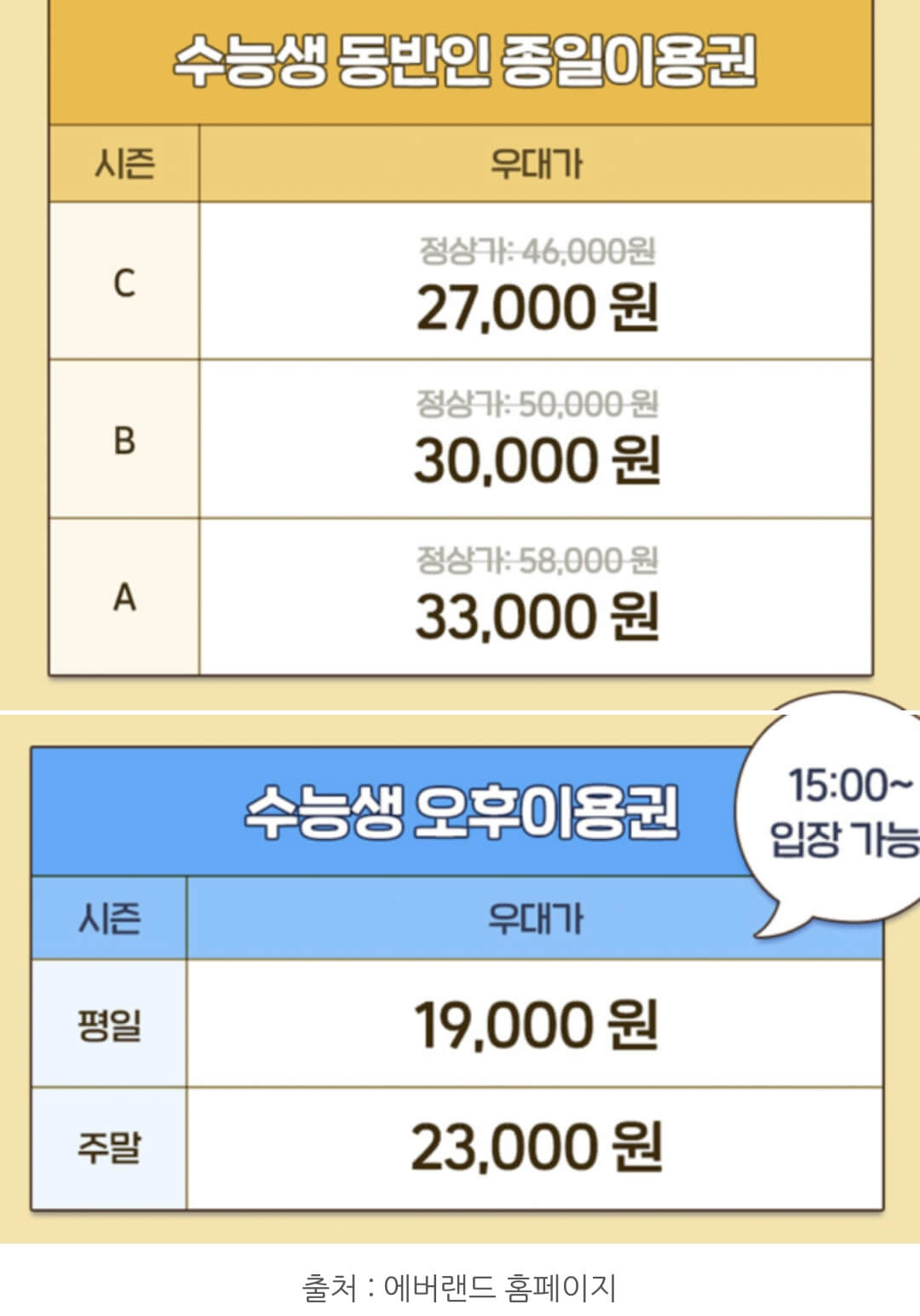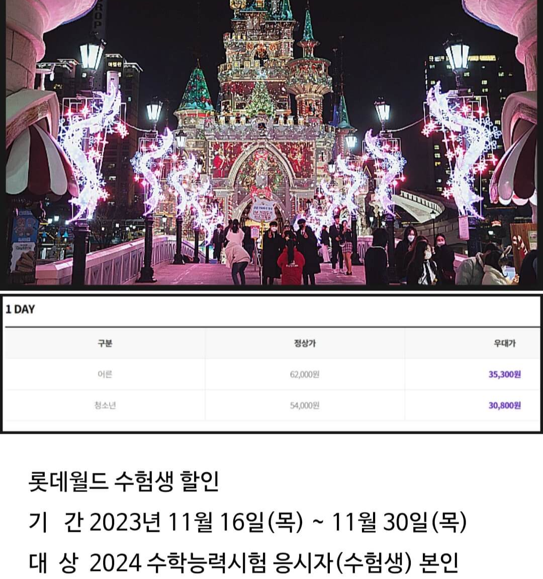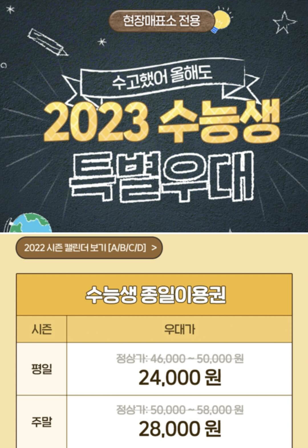 아래 해당 페이지에서 무료 티켓과 수험생 할인 이벤트에 참여하세요. 이런 할인, 남학생들은 군대 가기 전까지는 또 받기 힘들 겁니다. 현재를 즐기세요.