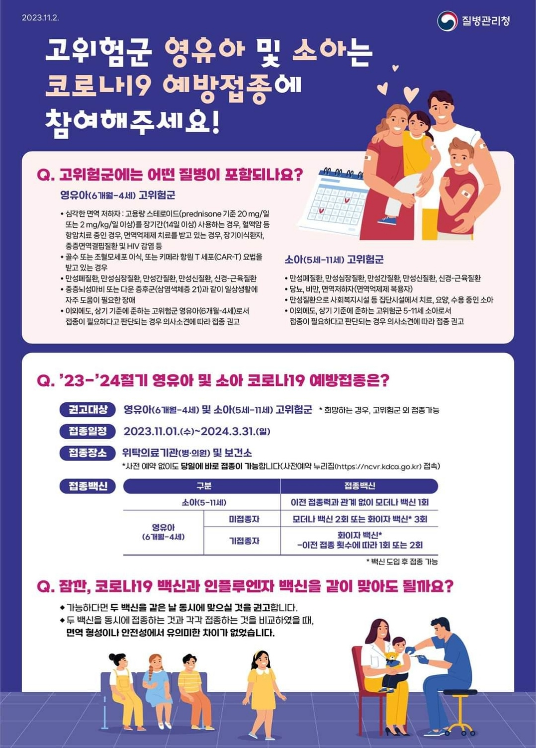 코로나19 예방접종 고위험군 영유아 소아 6개월~11세 보건소 위탁의료기관 23/24절기